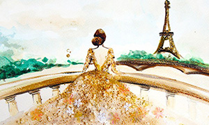 Когда узорами платьев служат здания, облака и листья, получаются фантастически красивые иллюстрации.