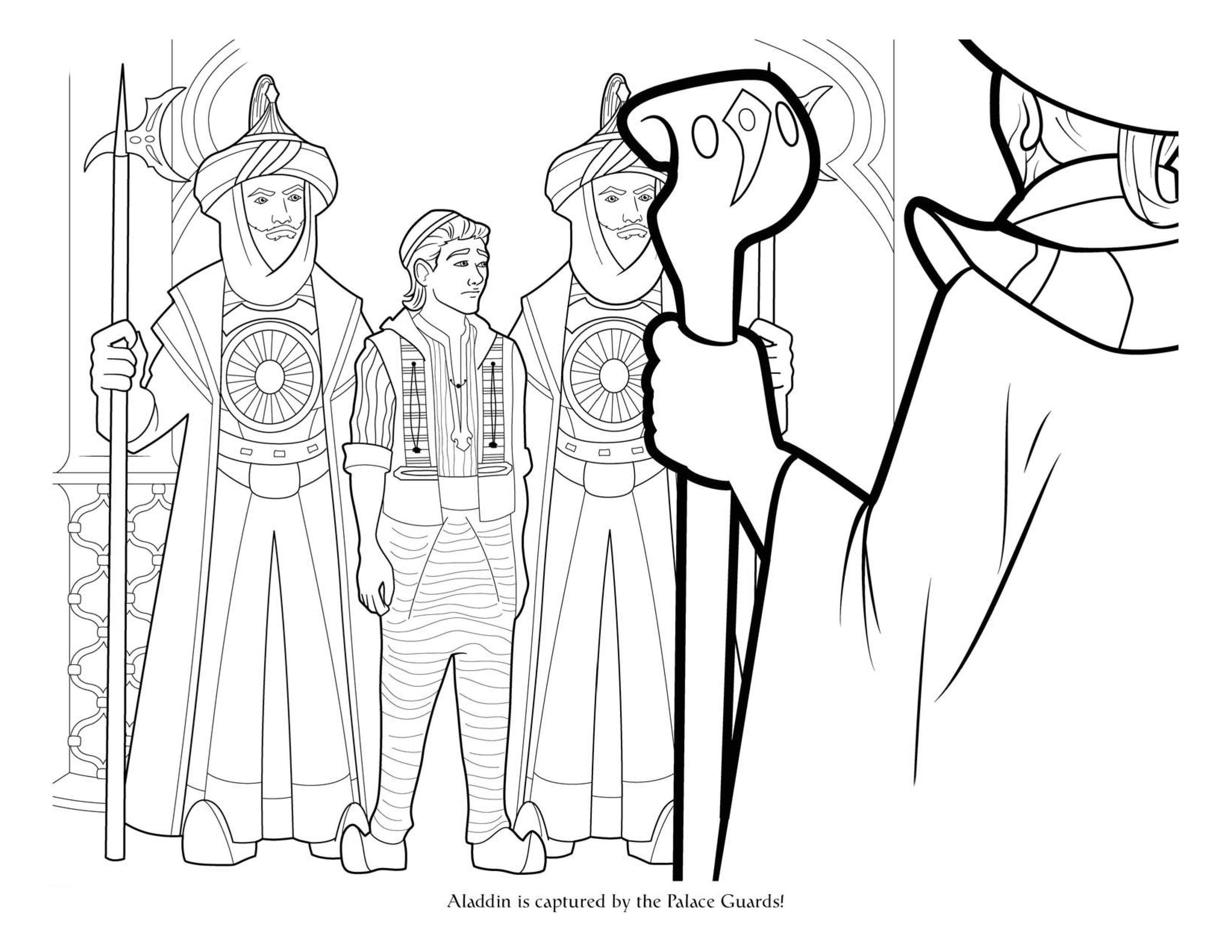 Чтобы скачать картинку Раскраска Аладдина схватили стражи в фильме 2019 нажми на нужное разрешение в таблице: