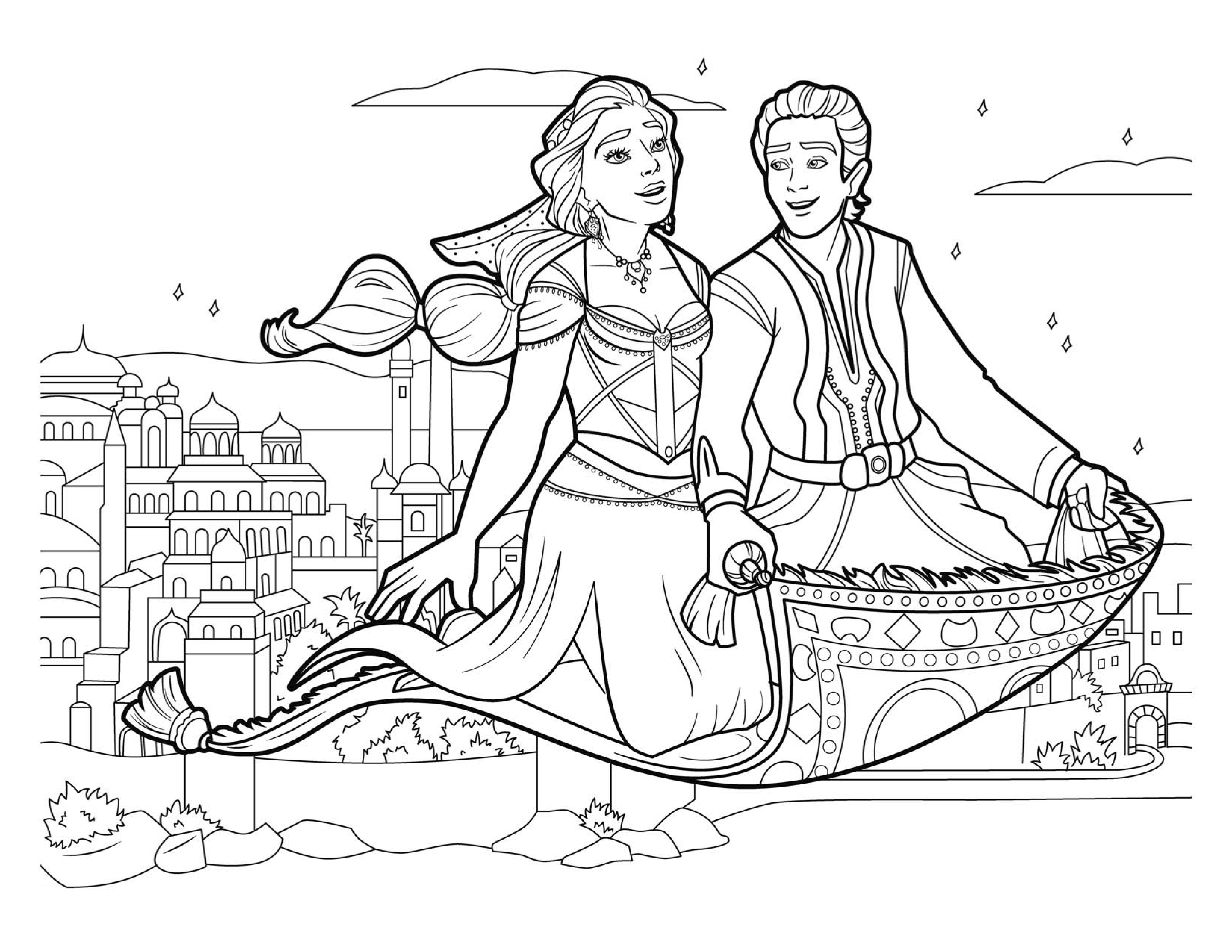 Чтобы скачать картинку Раскраска Аладдин и Жасмин на ковре самолете в фильме нажми на нужное разрешение в таблице: