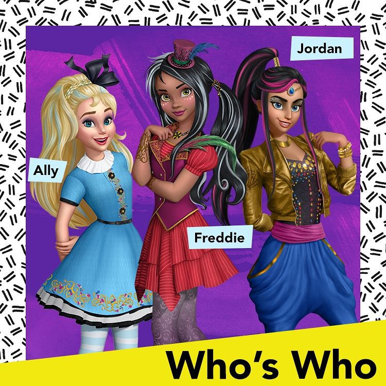 Чтобы скачать картинку Наследники Недобрый Мир - Элли, Фредди и Джордан нажми на нужное разрешение в таблице: