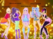 Ну вы знакомы с Мирабель,Вирджинией и Мистериею=))) Познакомтесь еще с двумя моими выдуманными персами Эвелайн и Лайвною=) Лайвна- она девочка эмо а также родная сестра Эвелайн. Все силы 5 фей действуют как на людей, так и волшебных существИ так характеристика моих персов=))) Эвелайн: 16 лет, но выглядит она немного старше. Обладает силой имитации, то есть собственной силы у нее нету, но когда она видит какую-либо атаку, то может в точности повторить ее и применять несколько раз. Атаки она рассматривает с помощью своих инфрокрасных глаз, которые меняют цвет в зависимости от ситуации. Эвелайн она любит быть немного скромной,но в то же время она веселая и прикольная с хорошим чувством юмора. Вирджиния: 18 лет. Обладает силой скульптора реальности. Она может контролировать людские эмоции и чувства, превращая защиту в нападение. При Параде Планет она может полностью иметь контроль над человеком заставляя его делать, то,что она захочет. Вирджиния очень любознательная и интересная. Мирабель: 17 лет. Обладает силою ласки и позитивных чувств. Она может заставить злых людей стать нежными и хорошими,но из-за этого она лишается магии ,для ее восстановления нужно 13 дней. Она очень часто применяет эту силу, но потом ей нужна защита своих подруг из клуба. Она скромная и нежная. Мистерия: 17 лет. Обладательница мистической силы. Она может задурить голову любому магическому созданию, и она может заставить их видеть то,что они боятся или ненавидят, что-то типа галлюцинаций. Сила очень опасная как для жертвы, так и для самой феи,которая ее применяет, потому что она может направить случайно на себя или же союзников и для избежания этого, ее используют в конвергенции. Так же она с помощью силы может увидеть будущее или прошлое, она обладает силами экстрасенса. Она загадочная и терпеливая. Лейвна: 16 лет. Обладательница силы противоположности. Любую атаку может превратить в контратаку или же защиту. Сила для клуба важна,так как она может легко сражаться с феями стихий. Так же, если она сильно разозлится, то может заставить человека действовать против воли- наоборот. Сила напоминает Инь - Янь=) Девочка-эмо немного странная,но очень дружелюбная и безкорисная. Кто прочитает получит печеньку=)) |