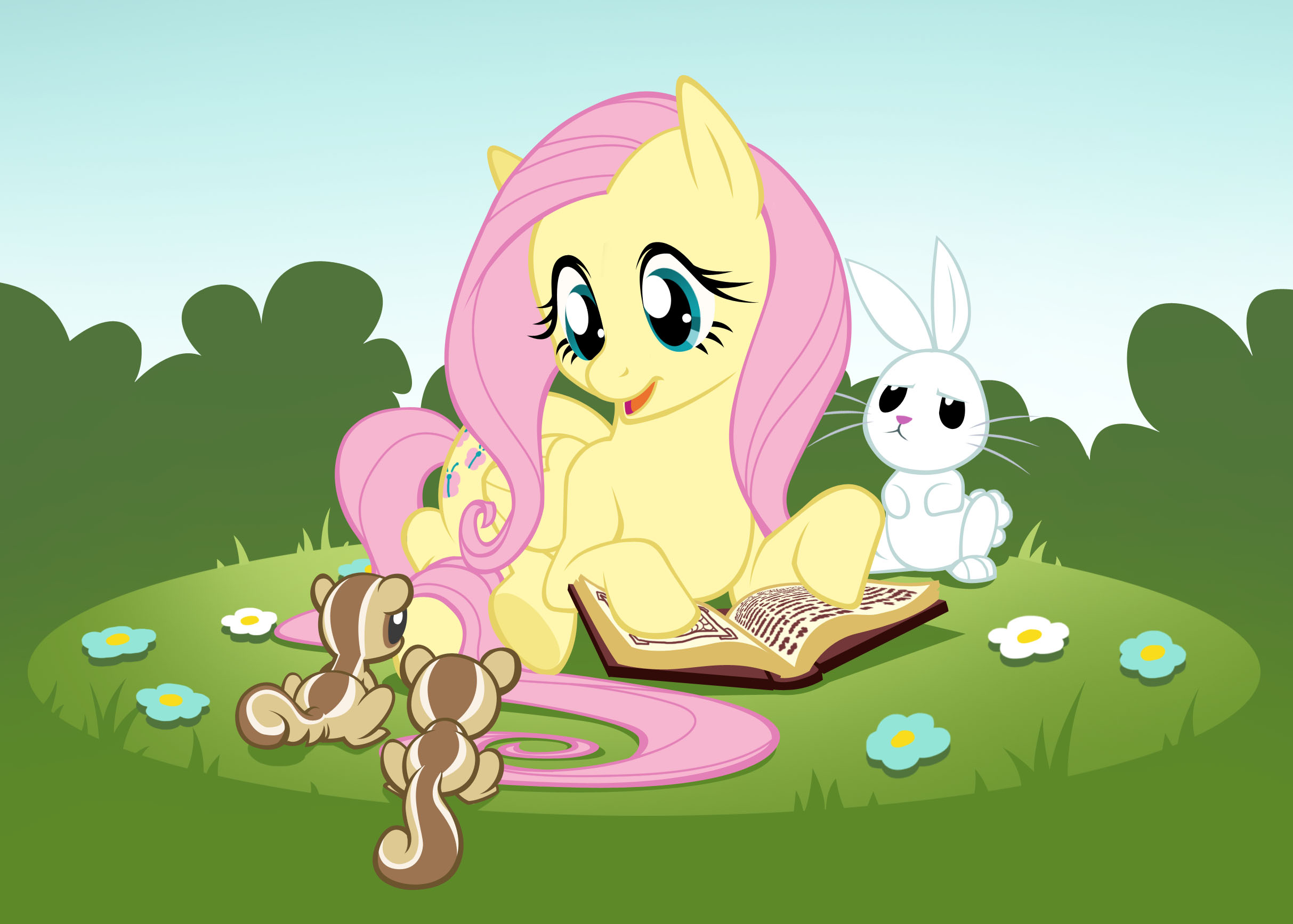Чтобы скачать картинку Флаттершай и зверята нажми на нужное разрешение в таблице: