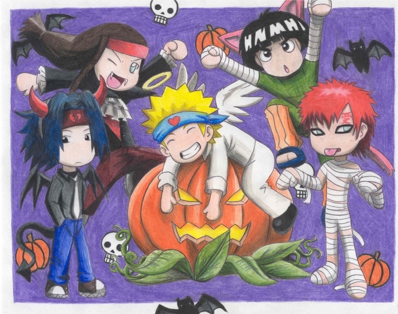 Чтобы скачать картинку Чиби нарутовцы счастливого Хэллоуина нажми на нужное разрешение в таблице: