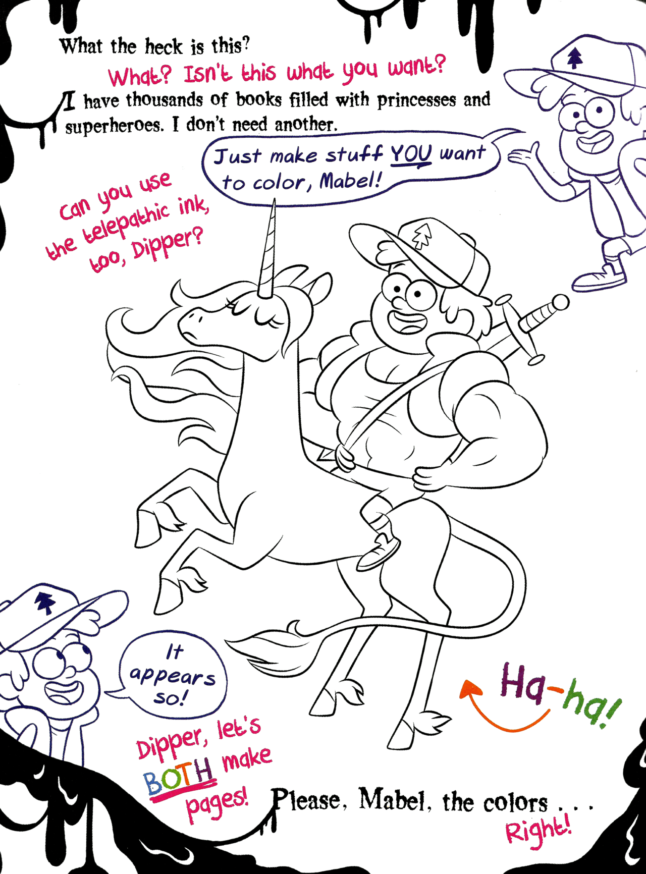 Чтобы скачать картинку Раскраска Гравити Фолз - Супер сильный Диппер верхом на единороге нажми на нужное разрешение в таблице:
