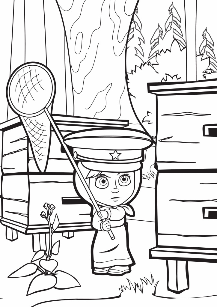 Чтобы скачать картинку Раскраска Маша и Медведь, Маша в фуражке нажми на нужное разрешение в таблице: