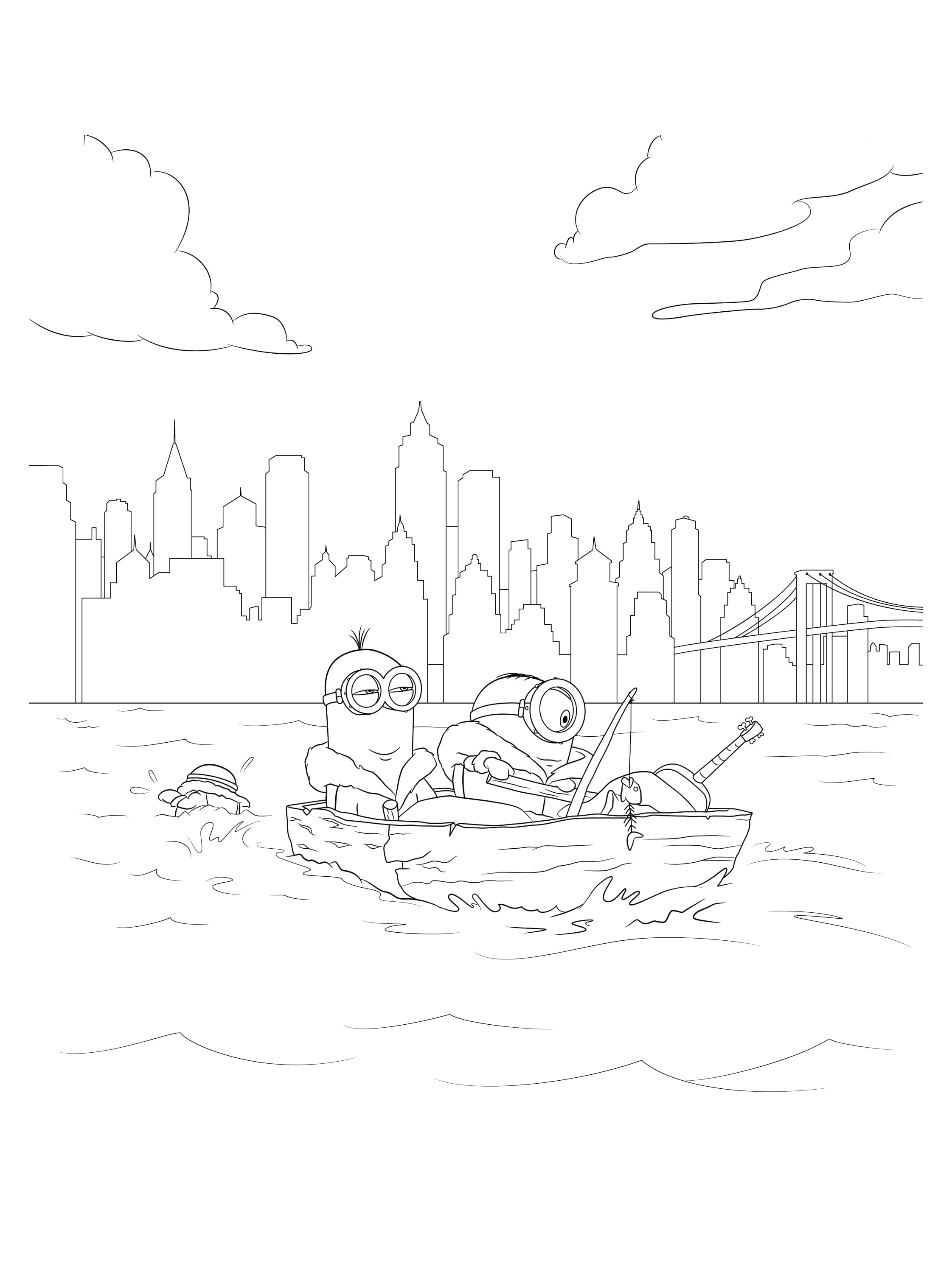 Чтобы скачать картинку Раскраска Миньоны плывут на лодке нажми на нужное разрешение в таблице:
