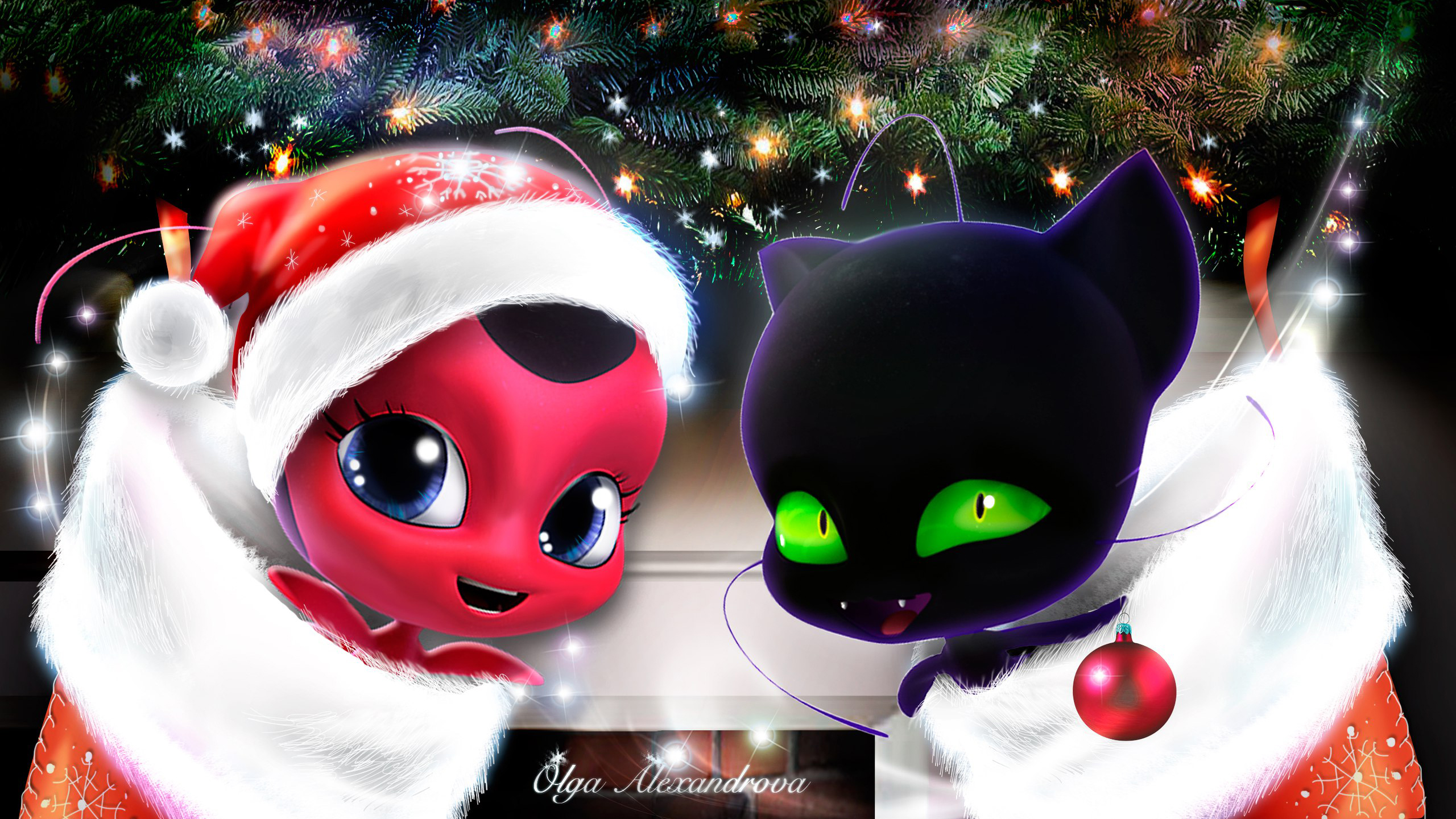 Чтобы скачать картинку Леди Баг и Супер-Кот новогодние квами Тикки и Плагг нажми на нужное разрешение в таблице: