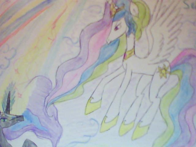 Чтобы скачать картинку Битва Селестии и Найтмейр Мун нажми на нужное разрешение в таблице:
