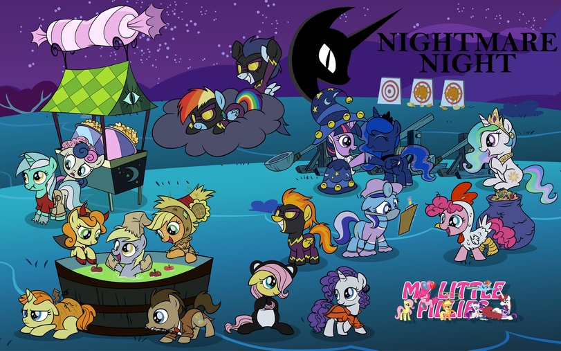 Чтобы скачать картинку Маленькие пони на Хэллоуин нажми на нужное разрешение в таблице: