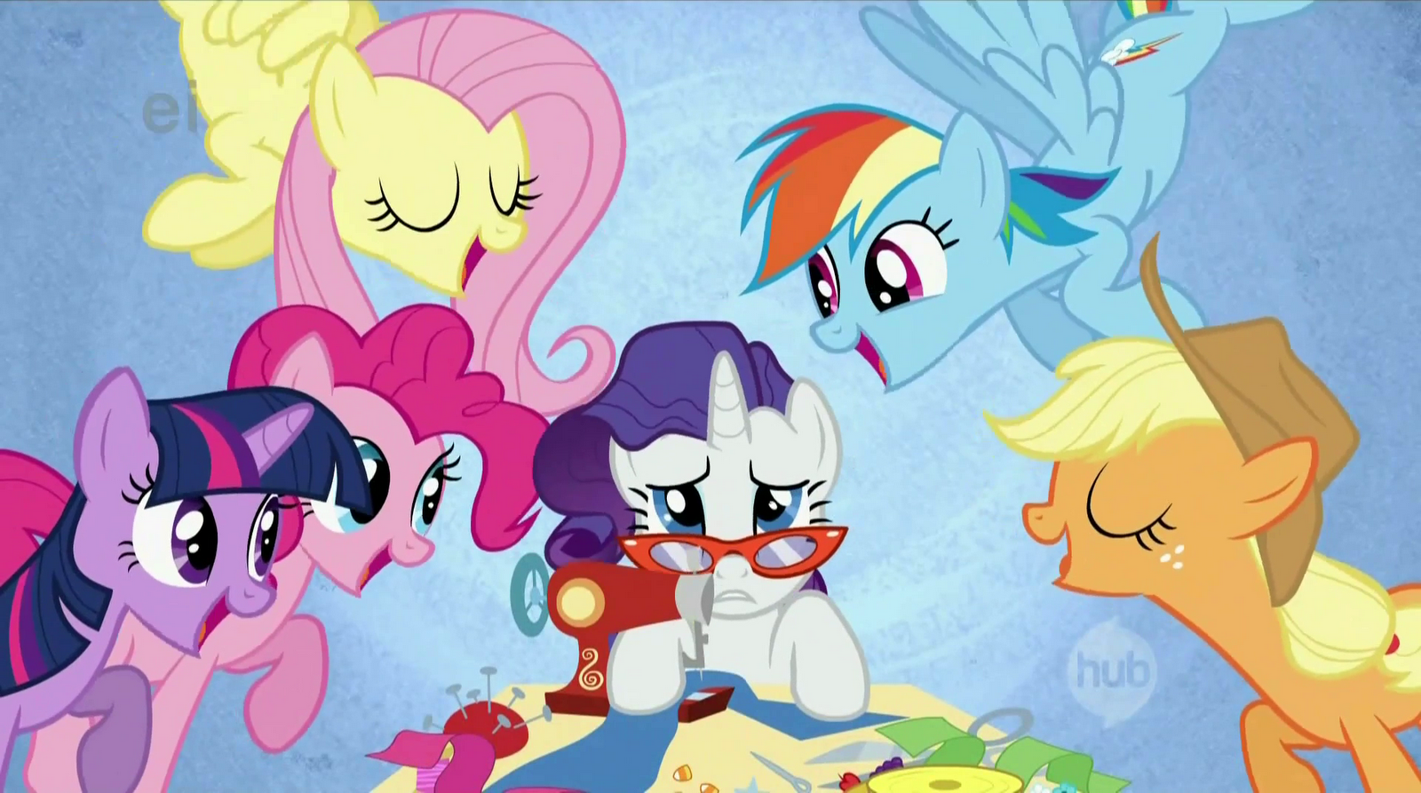 Чтобы скачать картинку Рарити шьет платье для подруг нажми на нужное разрешение в таблице: