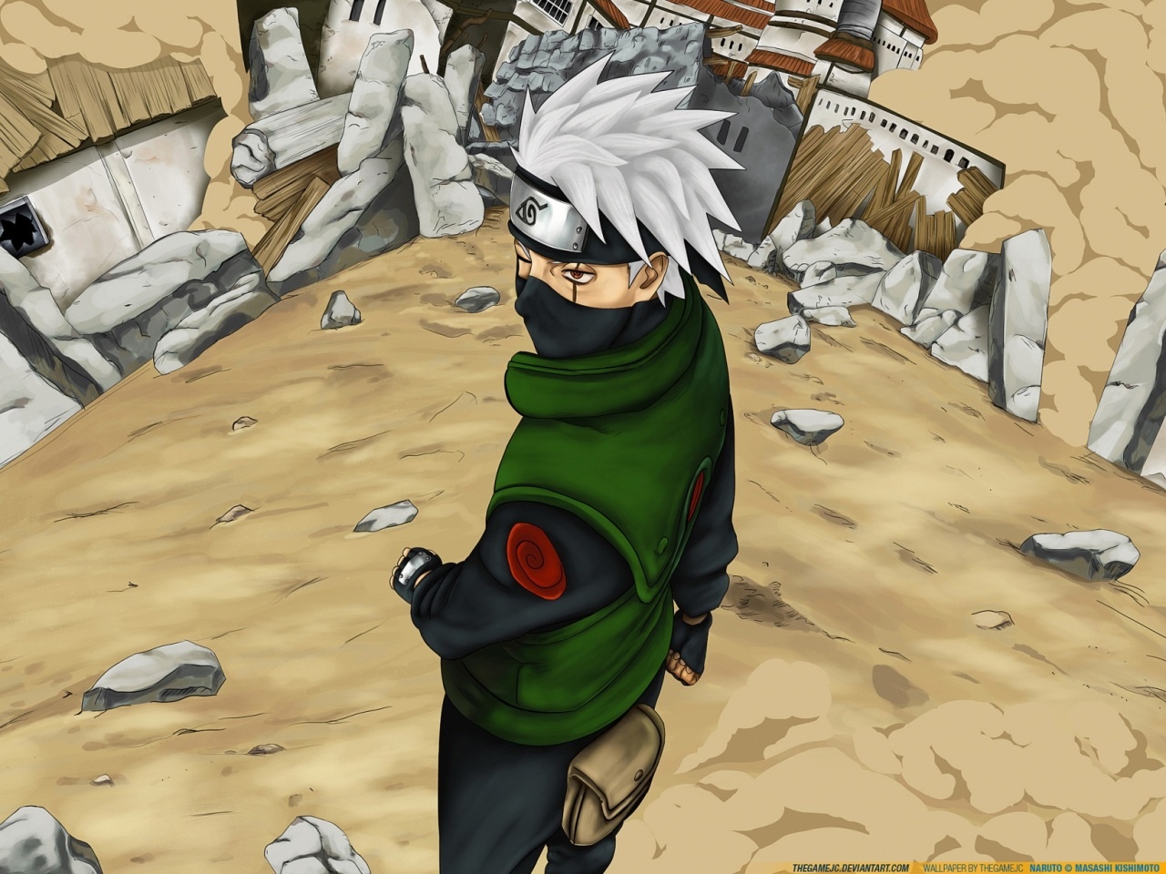 Чтобы скачать картинку Какаши на развалинах Конохи нажми на нужное разрешение в таблице: