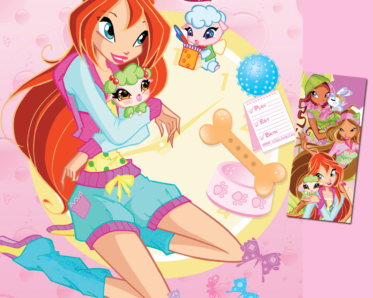 Чтобы скачать картинку Обои Блум стиль волшебных питомцев Винкс нажми на нужное разрешение в таблице: