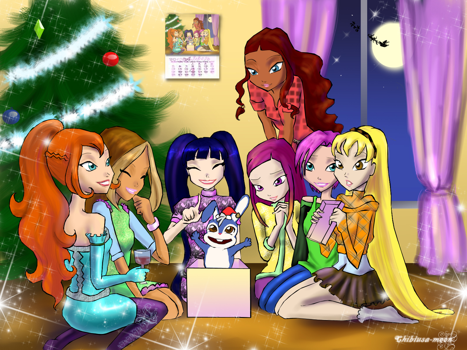 Чтобы скачать картинку Новогодние обои с Винкс, Рокси и Кико нажми на нужное разрешение в таблице: