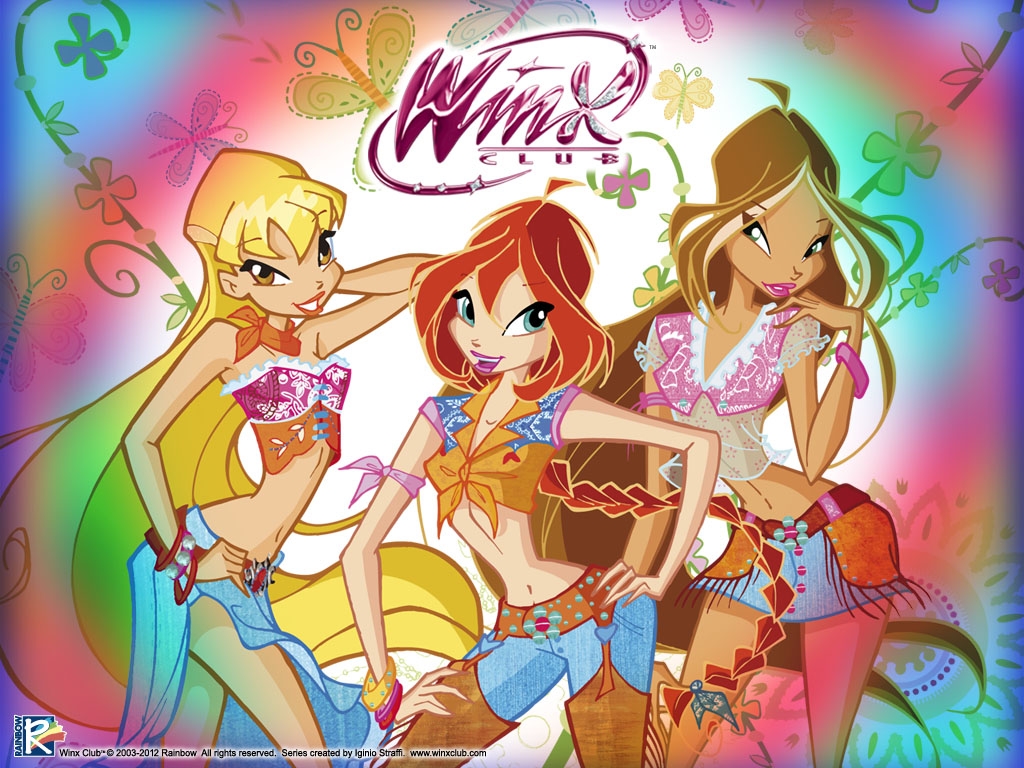 Чтобы скачать картинку Обои Стелла,Блум и Флора Винкс Ковбои нажми на нужное разрешение в таблице: