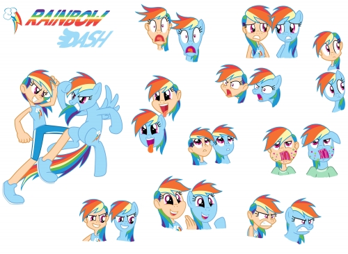 Чтобы скачать картинку Радуга Дэш пони и человек нажми на нужное разрешение в таблице: