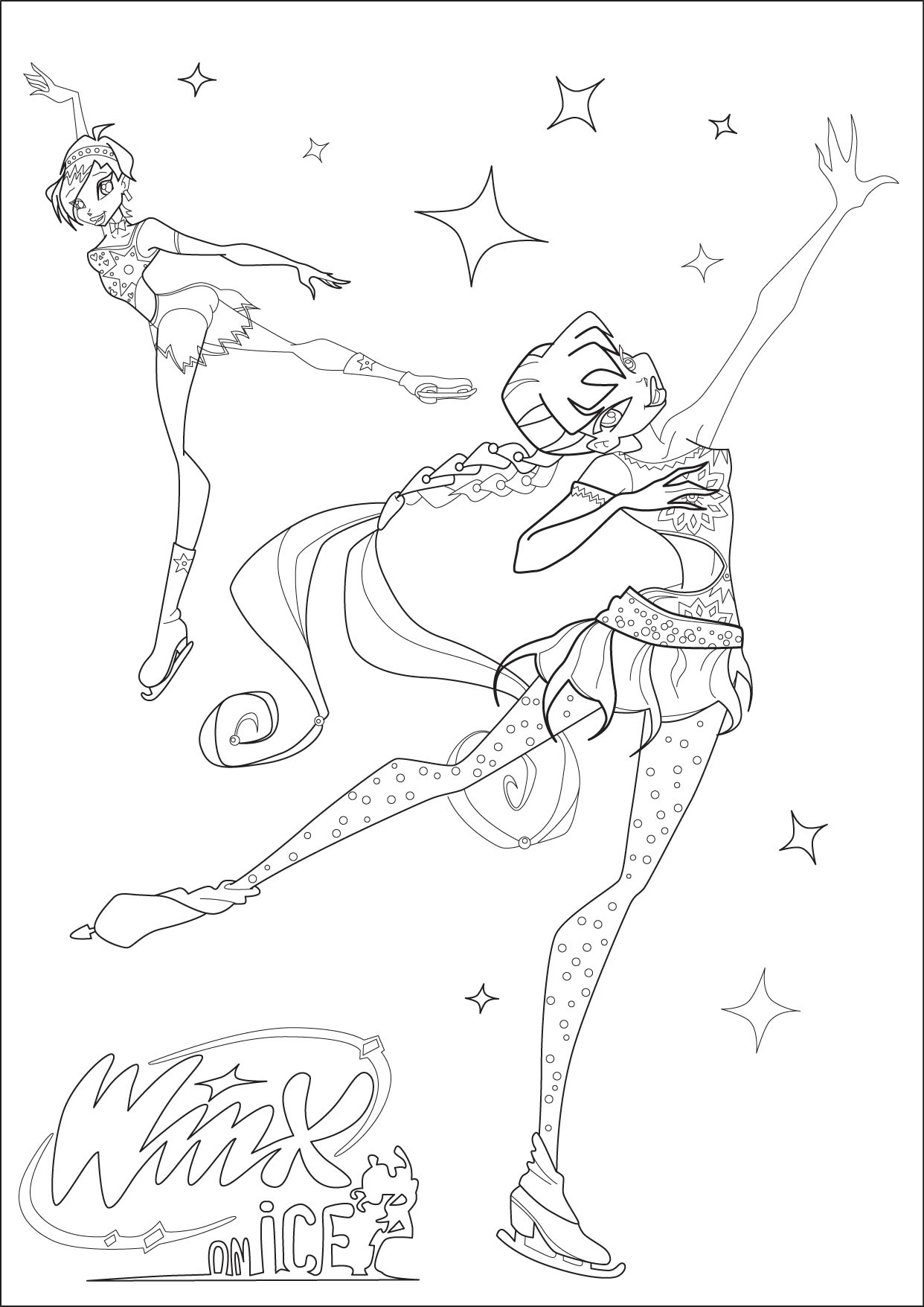Чтобы скачать картинку Раскраска Винкс на льду, Стелла и Техна нажми на нужное разрешение в таблице: