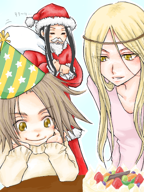 Чтобы скачать картинку Хана, Анна и Йо в образе деда мороза нажми на нужное разрешение в таблице: