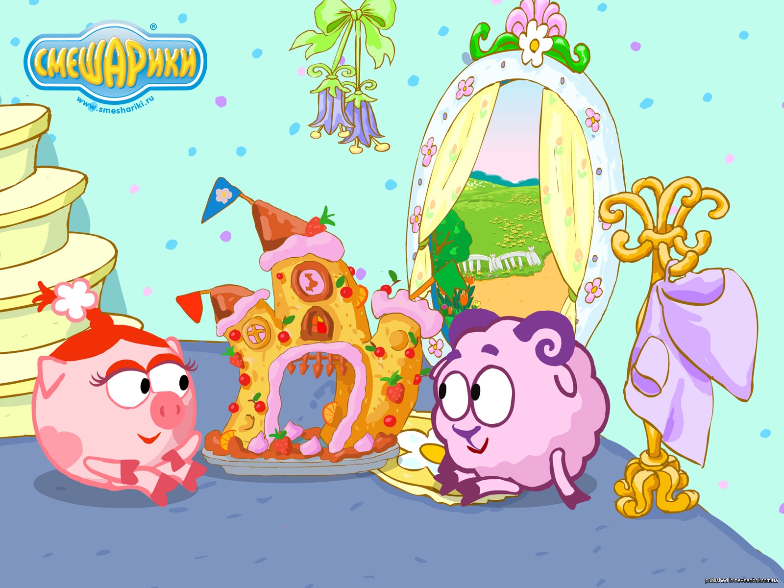 Чтобы скачать картинку Смешарики обои с Нюшей и Барашем нажми на нужное разрешение в таблице: