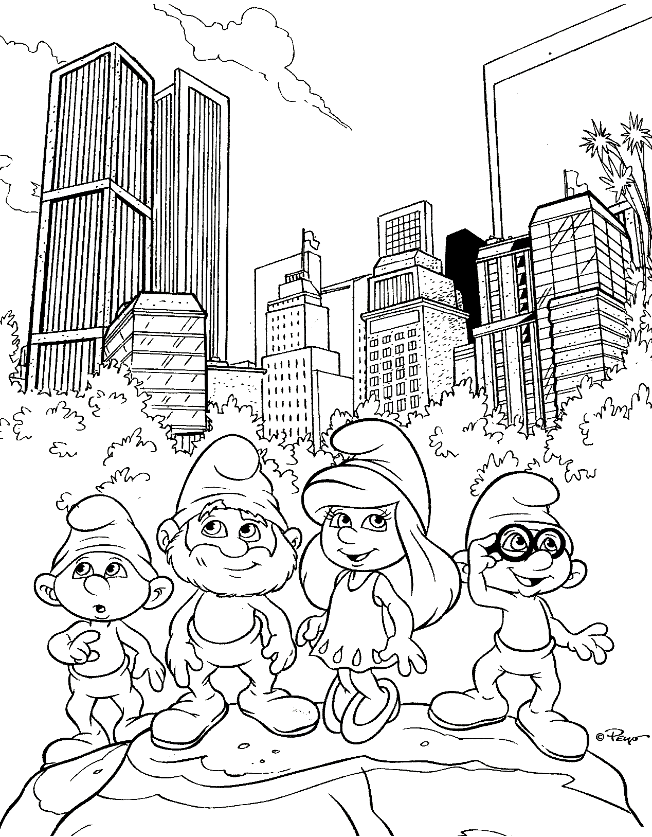 Чтобы скачать картинку Смурфики в большом городе нажми на нужное разрешение в таблице:
