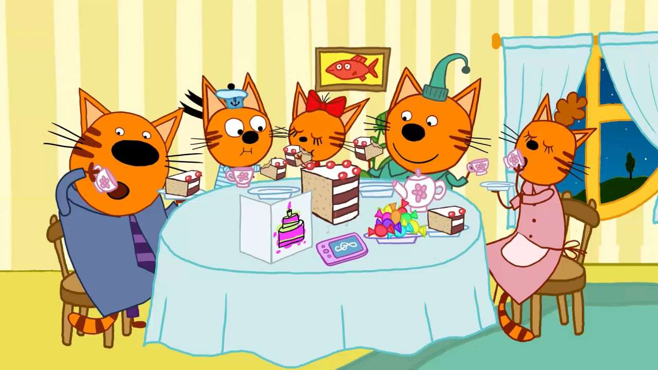 Чтобы скачать картинку Три Кота домашнее праздничное чаепитие нажми на нужное разрешение в таблице: