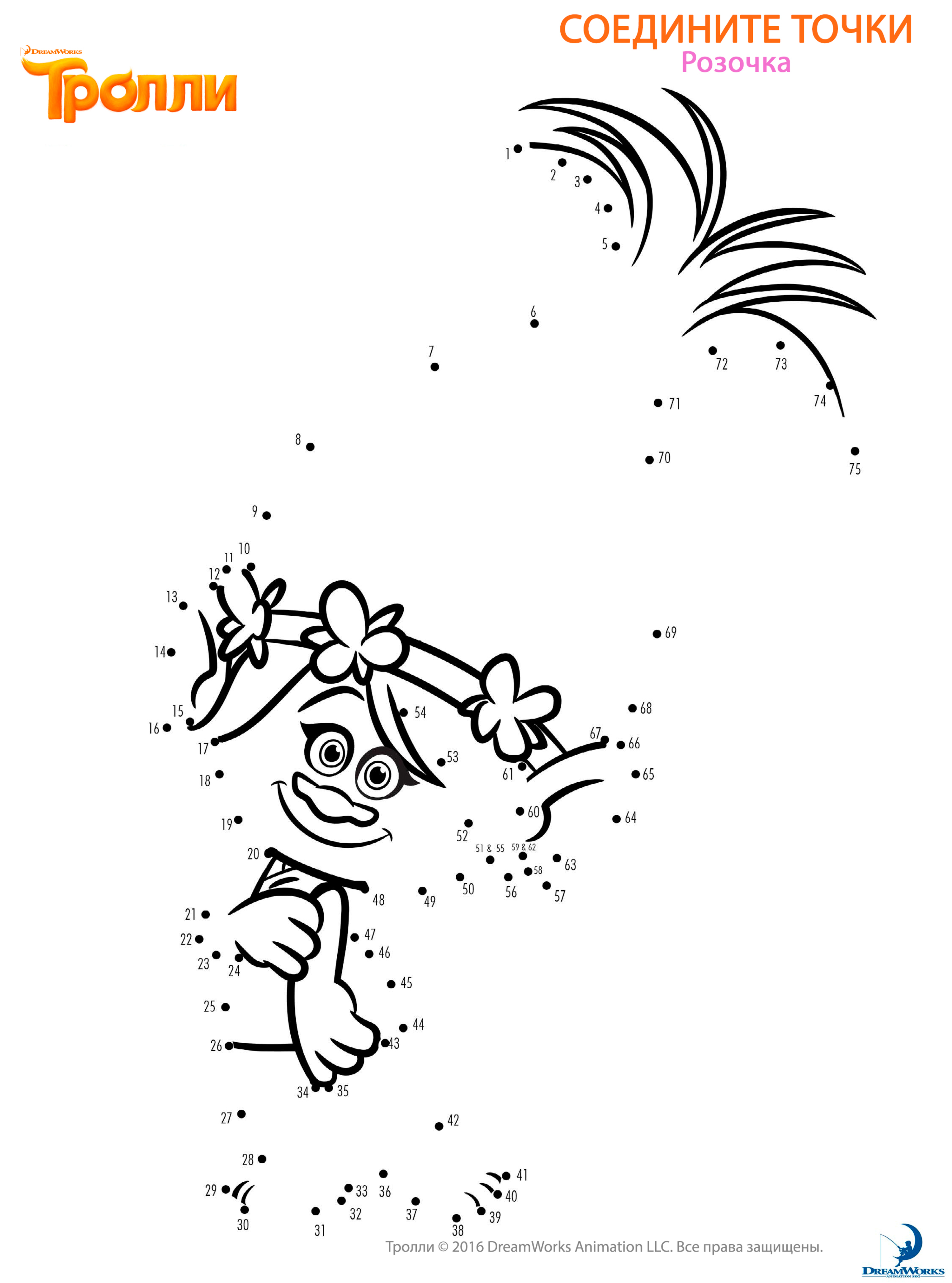 Чтобы скачать картинку Соедини точки и раскрась тролля Розочку нажми на нужное разрешение в таблице: