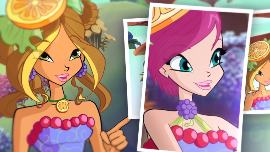 Чтобы скачать картинку Винкс 7 сезон Флора и Техна во фруктовых нарядах нажми на нужное разрешение в таблице: