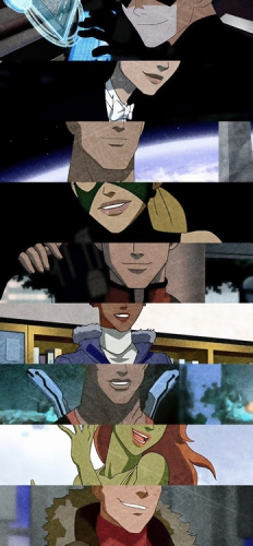 Чтобы скачать картинку Юная Лига Справедливости улыбки героев нажми на нужное разрешение в таблице: