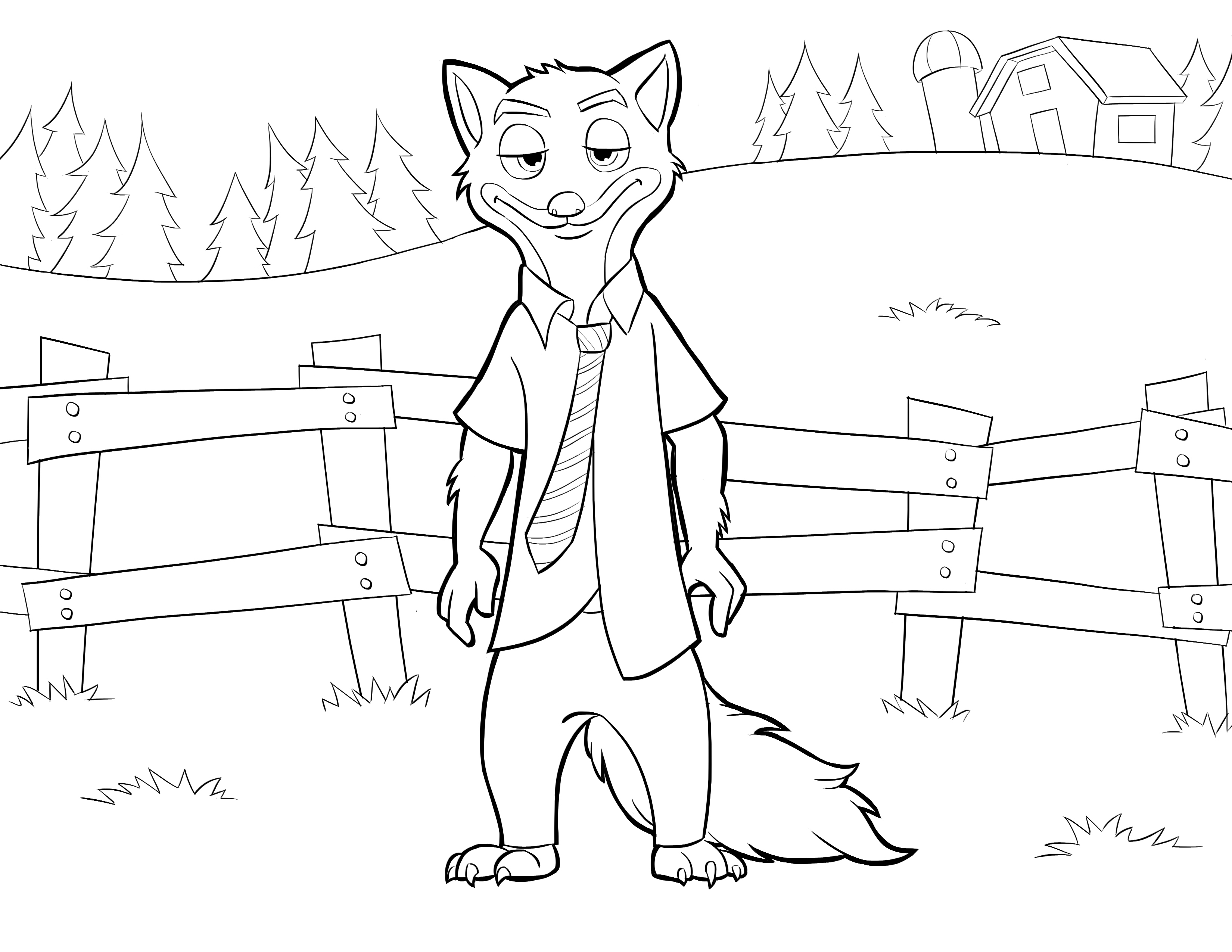 Чтобы скачать картинку Зверополис раскраска лиса Ника нажми на нужное разрешение в таблице: