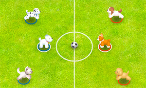 Интересная игра для двоих, в которой нужно управлять одной из команд щенков, играющих в футбол.