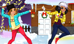 Игра для девочек: Зимняя одевалка двух подруг - битва снежками