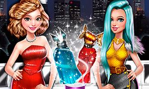 Праздничная игра одевалка для двух девушек - лучших подруг и любительниц блестящих нарядов.
