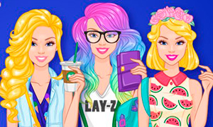 В солнечном Малибу где живет Барби всегда солнечно. И Барби просто обожает летние наряды. Сегодня ей хочется надеть что-нибудь с принтом в горошек. Помогите Барби выбрать новую прическу, платье и яркий летний макияж.