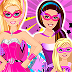Подготовьте супер отряд для супер подвигов. Нарядите Барби и её сестер в красивые наряды, плащи, маски и другую атрибутику супер героинь.
