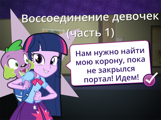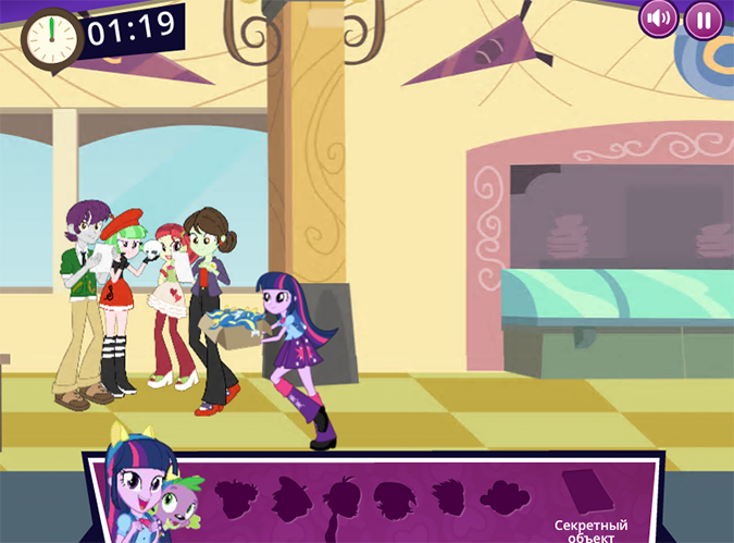 На официальном сайте Hasbro, посвященном мультфильму Equestria Girls появился раздел с играми, в том числе эта увлекательнейшая игра бродилка с Твайлайт Спаркл.