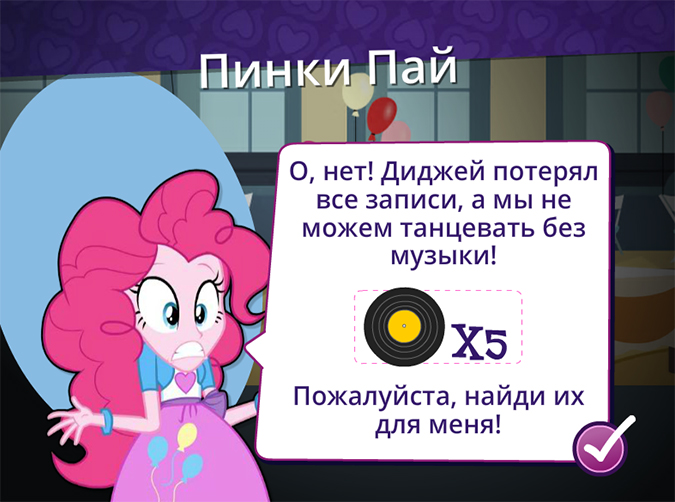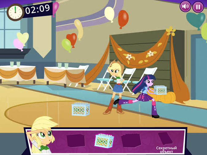Иногда нужные предметы Флаттершай, Рейнбоу Дэш, Рэрити, Эпплджек, Пинки Пай будут отдавать тебе автоматически, а иногда их нужно будет брать самостоятельно и разносить.