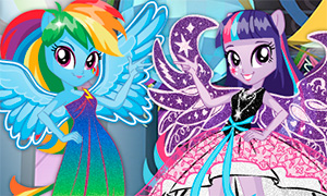 Игра с Девушками Эквестрии - Твайлайт и Рэйнбоу Дэш, соревнующимися в лучшем выборе нарядов.