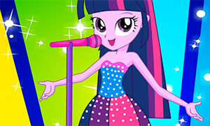 Игра одевалка Твайлайт Спаркл для выступления на сцене. Придумай для Твайлайт новый образ.
