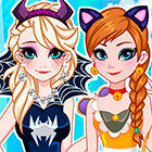 Грядут большие празднования Хэллоуина в Эренделле и Анна с Эльзой тоже решили в них поучаствовать. Помогите Эльзе с Анной сделать выбрать красочный готический или романтический макияж и красивые наряды на Хэллоуин.