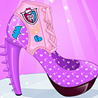 Побудьте дизайнером для учениц школы Монстр Хай. Придумайте для них невероятно красивый дизайн туфель в монстряшном стиле. На первом этапе вы сможете выбрать форму каблука и дополнительные элементы, на втором этапе выбрать цвет, а на последнем сможете украсить туфли наклейками Монстр Хай и дополнительными деталями.
