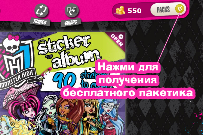 Раз в четыре часа ты сможешь нажимать эту кнопку и получать пакетик наклеек. После того как ты кликнешь на пакетик, ты увидишь свои наклейки. Наклейки вклеятся автоматически, а повторные отправятся в раздел "Swaps".