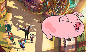 Игра с Мейбл и Пухлей на ярмарке, которая также известна как Свинский Полет или Waddles Food Fever.