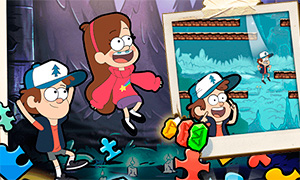Прыжки Мейбл вверх и спуск по платформам Диппера вниз в занимательной онлайн игре.