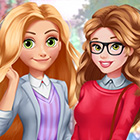 Рапунцель и Белль стали соседками по общежитию в университете. Помогите принцессам распаковать вещи и украсить их общую комнату, а также подобрать наряды для первого учебного дня.
