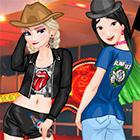 Дисней Принцессы собрали рок группу из четырёх участниц: Эльзы, Рапунцель, Мулан и Тианы. Девушки решили что для их первого выступления они выберут яркие образы со стильными майками. Поможем принцессам подготовится к концерту?