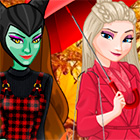 Четыре героини из совершенно разных мультфильмов встретились в одной игре. И всех их объединило одно - смена сезонного гардероба на осенний. Помогите Эльзе, Тиане, Малефисенте и Злой Королеве подобрать платья, куртки, ботинки и аксессуары по погоде.