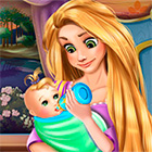 Спустя несколько лет после свадьбы у Рапунцель с Юджином родилась чудесная дочка. Этой ночью малышка все никак не может уснуть и тебе нужно помочь Рапунцель успокоить девочку, накормить её. В конце игры ты сможешь украсить комнату маленькой дочки Рапунцель по своему усмотрению.