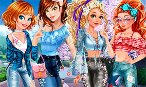 Стильная и модная игра с принцессами Дисней. Одень четырёх принцесс по последней летней моде.