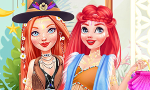 Мерида и Ариэль решили что им очень пойдут прически и одежда в стиле Бохо-Шик. А ты можешь это проверить в новой онлайн игре.