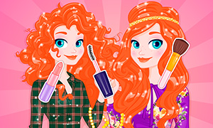 Современный макияж и одевалка для принцессы Мериды из мультфильма "Храбрая Сердцем".