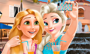 Игра одевалка Эльзы и Рапунцель, делающих селфи во время прогулки.